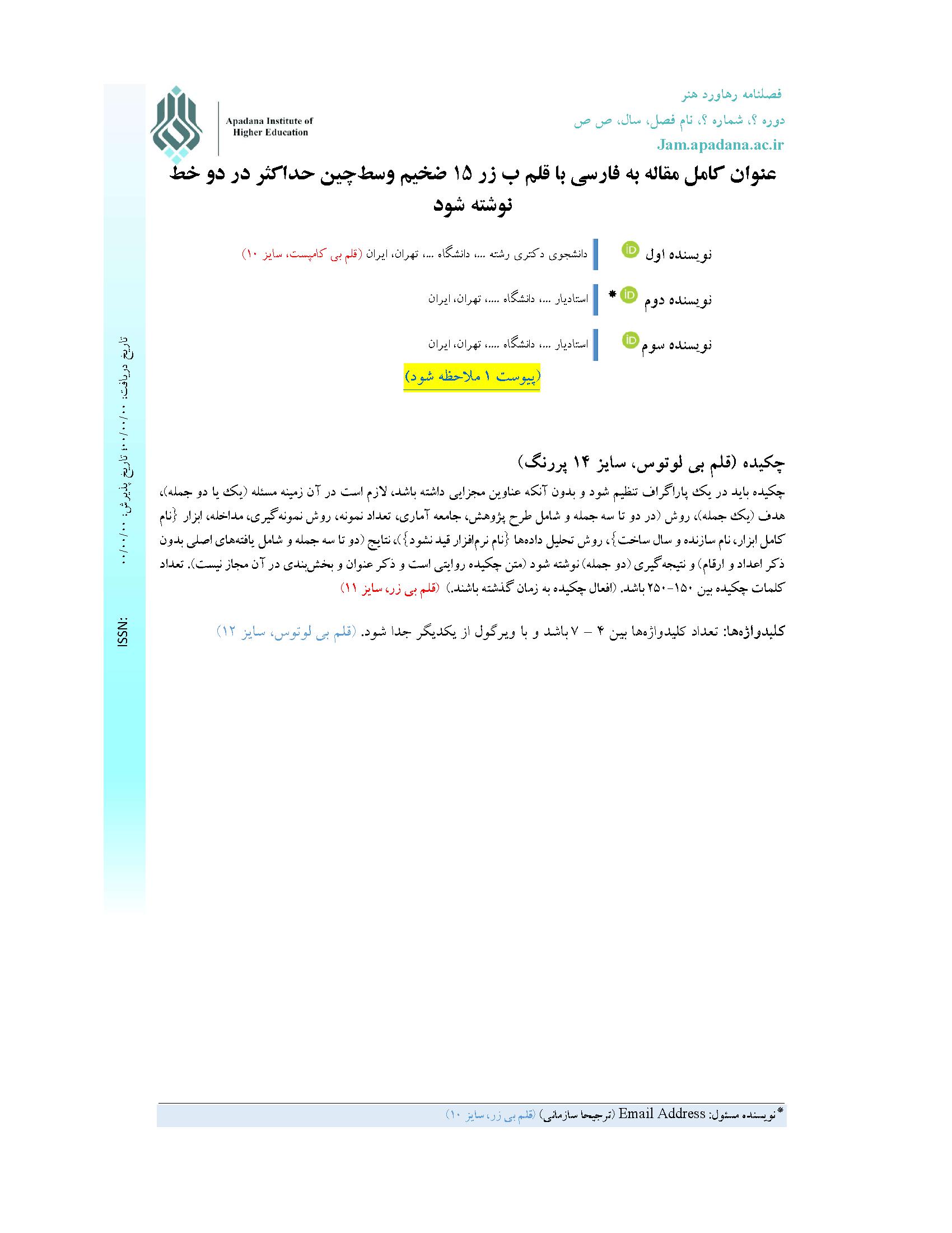 دسترسی آزاد به مقالات فصلنامه "رهاورد هنر"